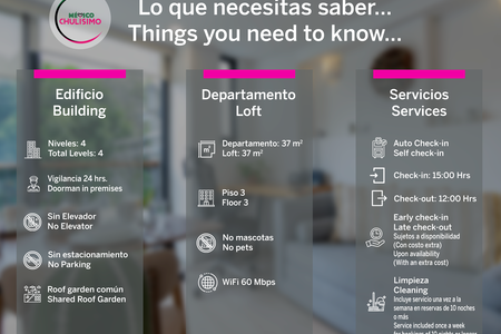 - No hay elevador (nuestro amable personal de vigilancia te ayudará con tu equipaje)